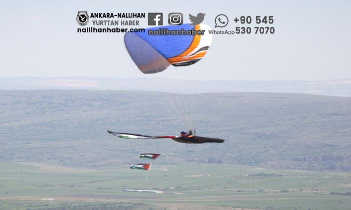 İsrail’in Filistin halkına yönelik zulmüne sessiz kalmayan Ankaralı yamaç paraşütçüleri, paraşütlerine astıkları Filistin bayrakları ile İsrail’e reaksiyonlarını gösterdi.