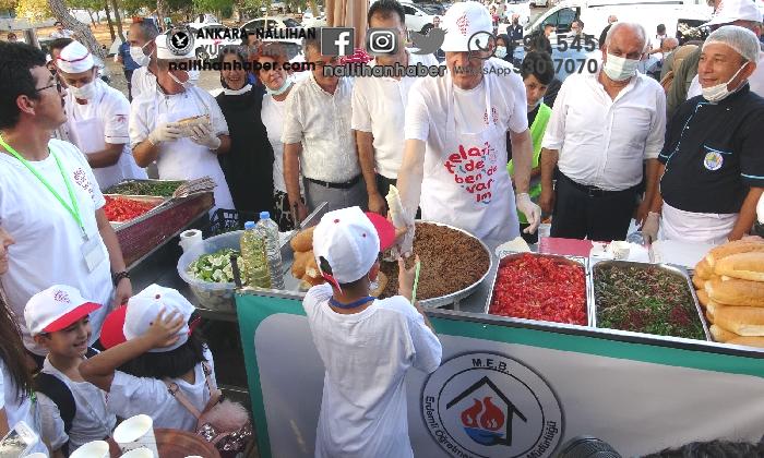 Bakan Selçuk, program sonunda öğrencilere kendi elleriyle hazırladığı Mersin’e özgü tantuni ve cezerye ikramında bulundu.