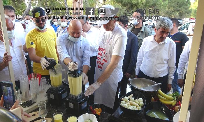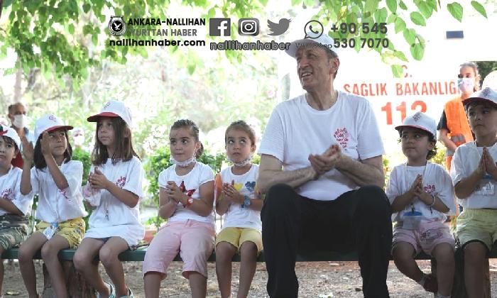 Öğrencilerle birlikte mangalda mısır pişiren Bakan Selçuk, öğrencilerin sopa ile top taşıma oyununa katıldı.