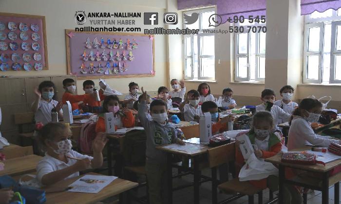 Gölbaşı Belediye Lideri Ramazan Şimşek, merkez bölgedeki okullarda öğrencilere suluk ikram etti.