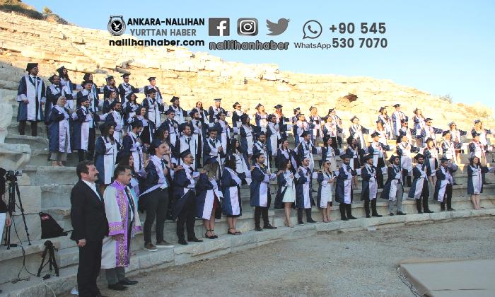 Pandemi devrinde yüz yüze eğitim veren Muğla Sıtkı Koçman Üniversitesi Tıp Fakültesi’nden mezun olan 85 hekim diplomalarını tarihin birinci tıp okulunun kurulduğu Muğla’nın Datça ilçesindeki antik Knidos kentinde aldı.